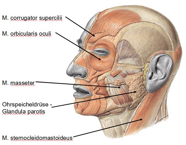 M. masseter - Kaumuskel, M. sternocleidomastoideus - Kopfnicker